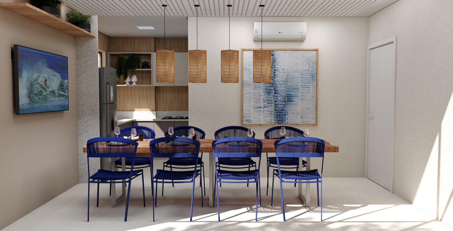 Áreas comuns entregues equipadas e decoradas